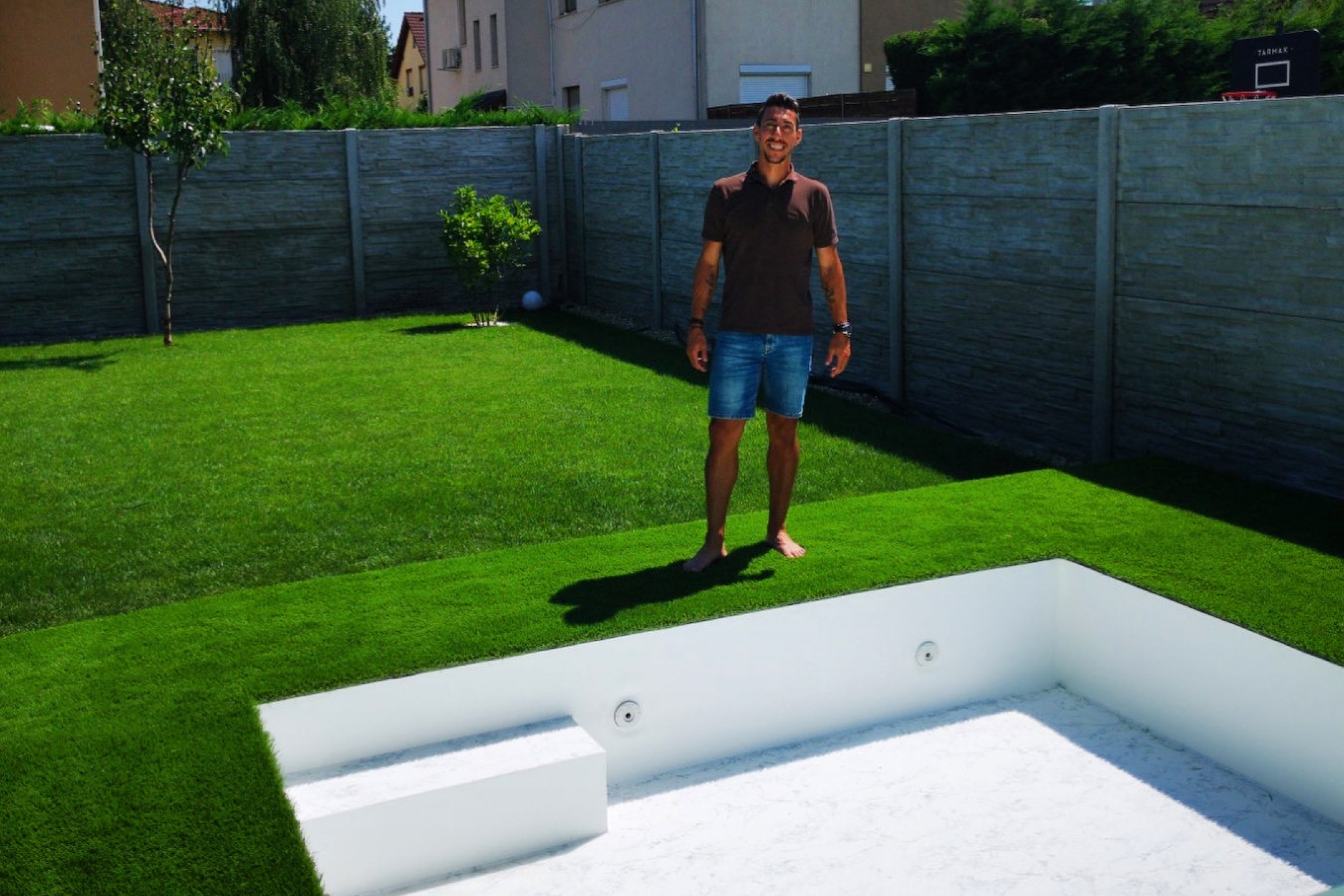 Világoszöld, rövidszálú pázsit, amely élénkségével és szabályosságával kevésbé természetes hatást kelt, azonban rendkívül praktikus megoldást nyújt nagy igénybevétel esetén.