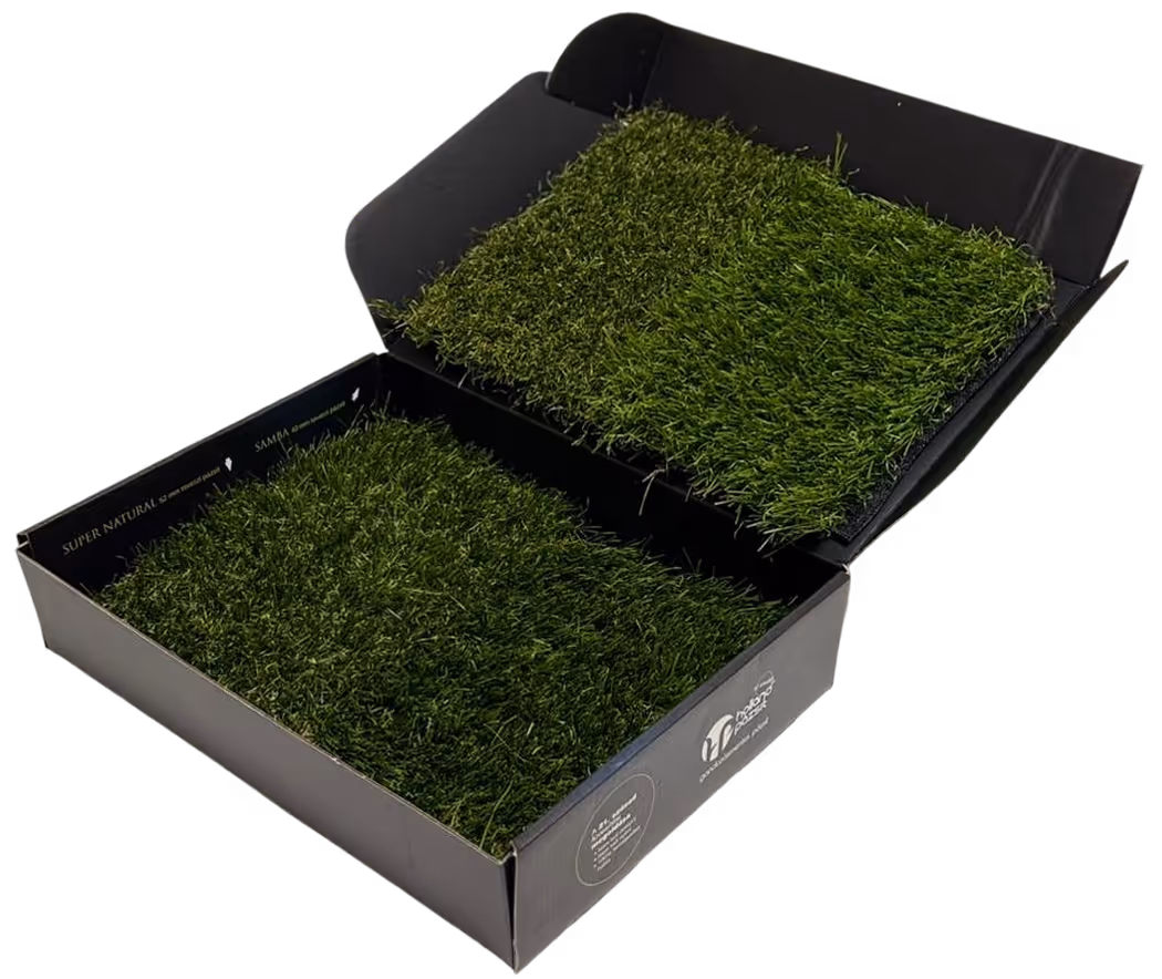 A doboz 4 kismintát tartalmaz, egy teljes Pázsit Boxot és egy Holland Pázsit 1×1 m méretű mintát, mellyel élőben megtapasztalhatod pázsitunk előnyeit.