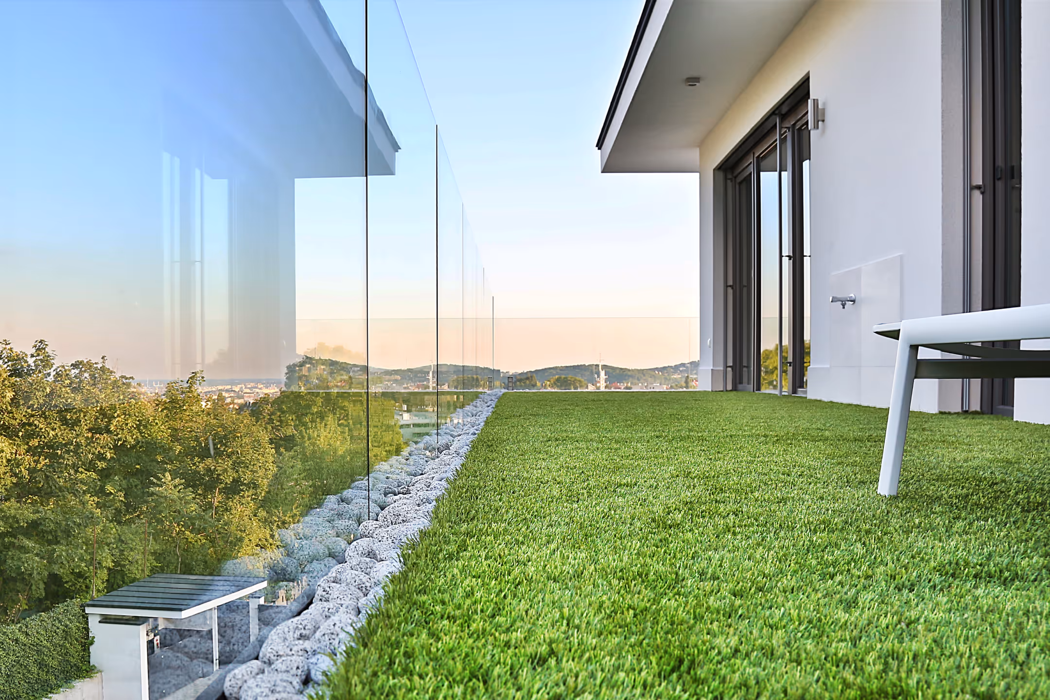 Az Intense 32 a játék bajnoka a kertben! A smaragdzöld, rövidebb szálú műpázsiton nem fog ki a mászóka, foci, a végtelen szaladgálás. Masszív, de természetes megjelenésével a mediterrán kertek rendezett, ápolt hatását nyújtja, amely akár a nagytestű vagy aktív kutyák mellett is sokáig szép marad.