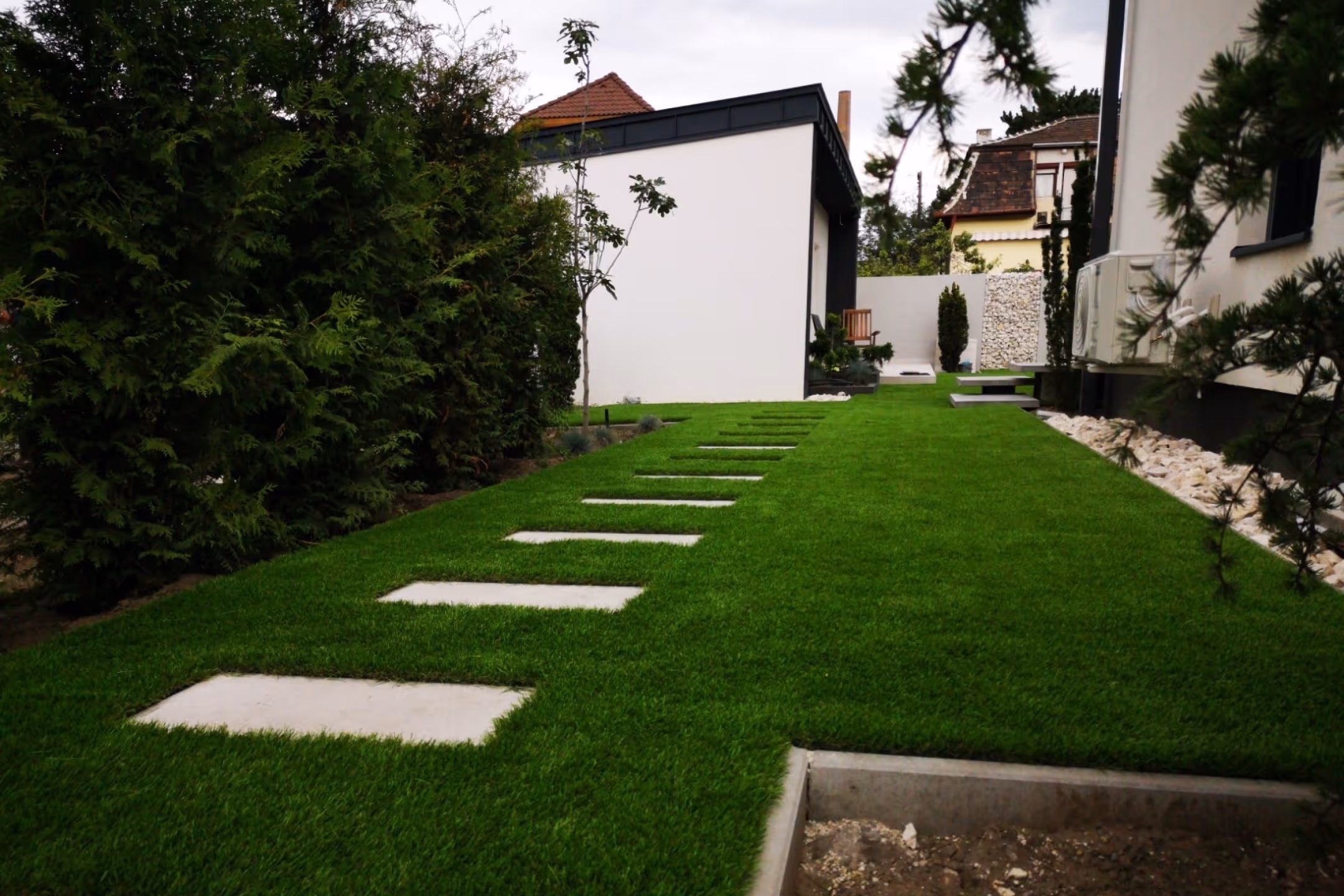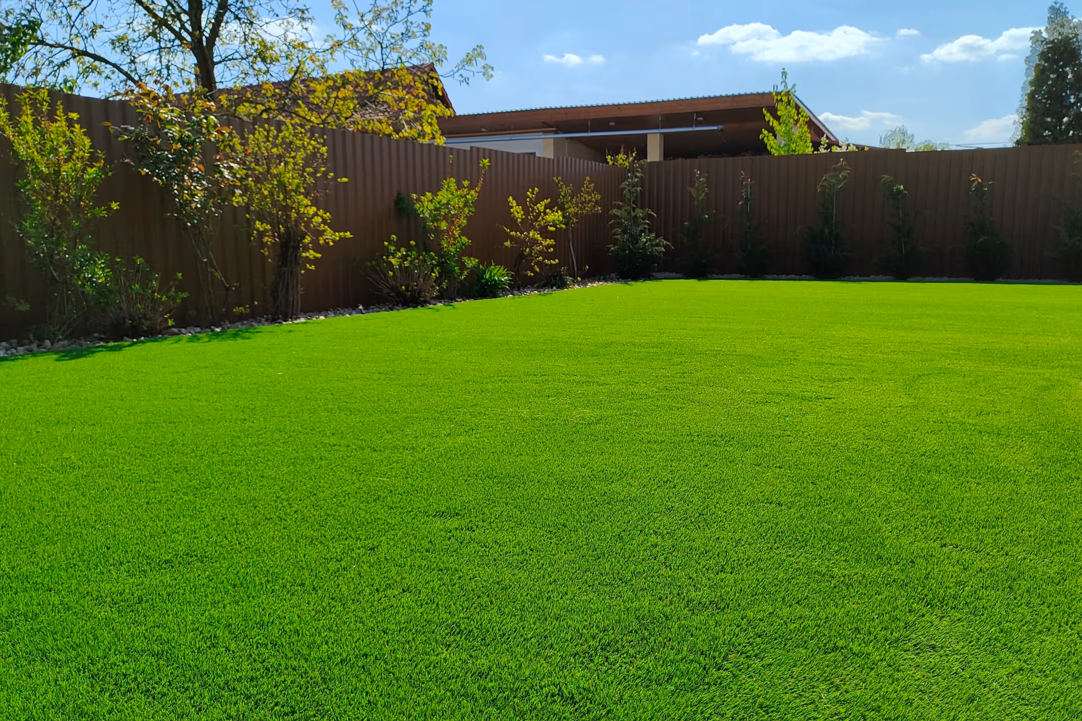Világoszöld, rövidszálú pázsit, amely élénkségével és szabályosságával kevésbé természetes hatást kelt, azonban rendkívül praktikus megoldást nyújt nagy igénybevétel esetén.