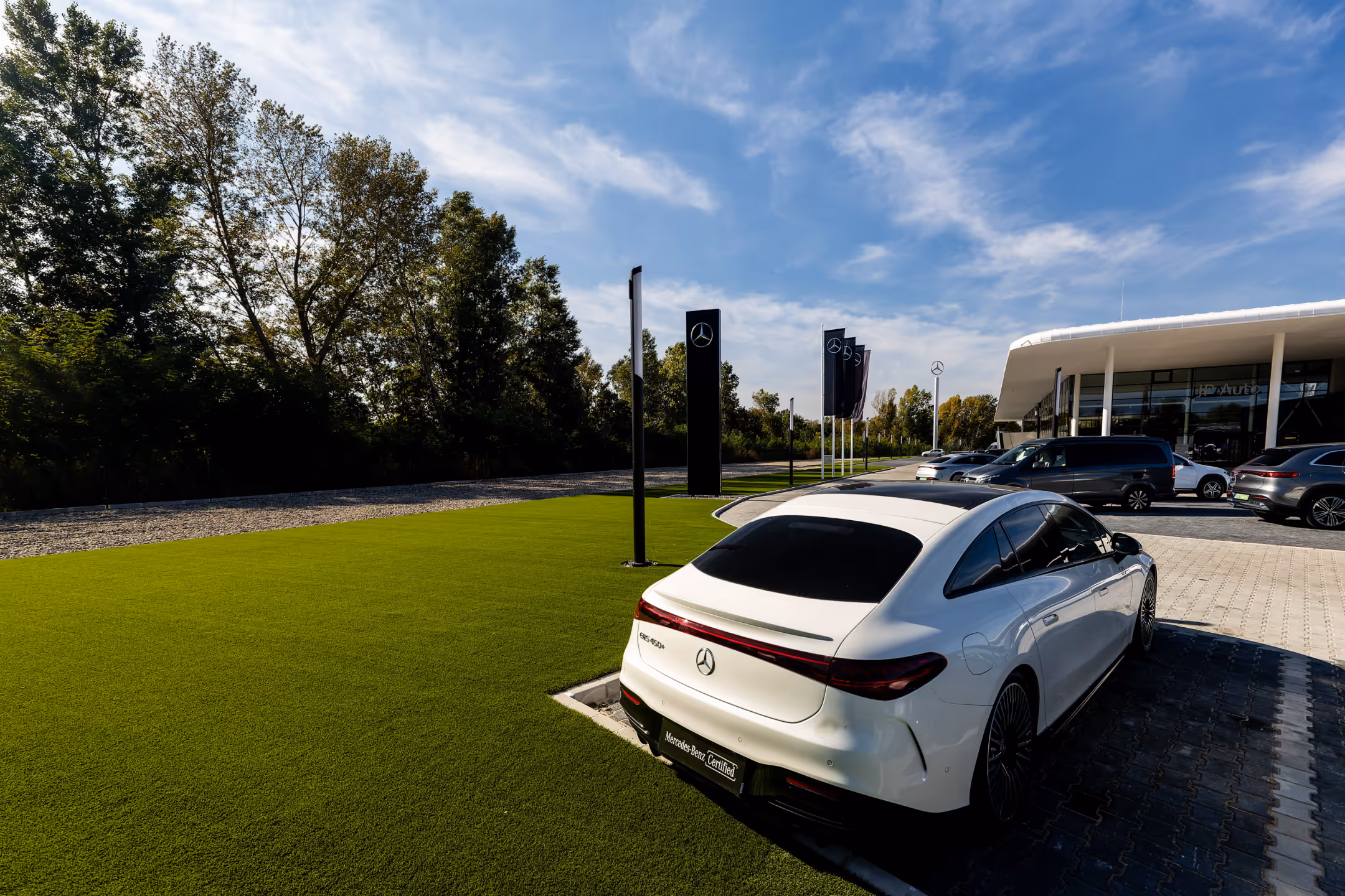 Mélyzöld, hibátlan és sűrű pázsit, amely valódi eleganciát sugároz teraszokon és kertekben.