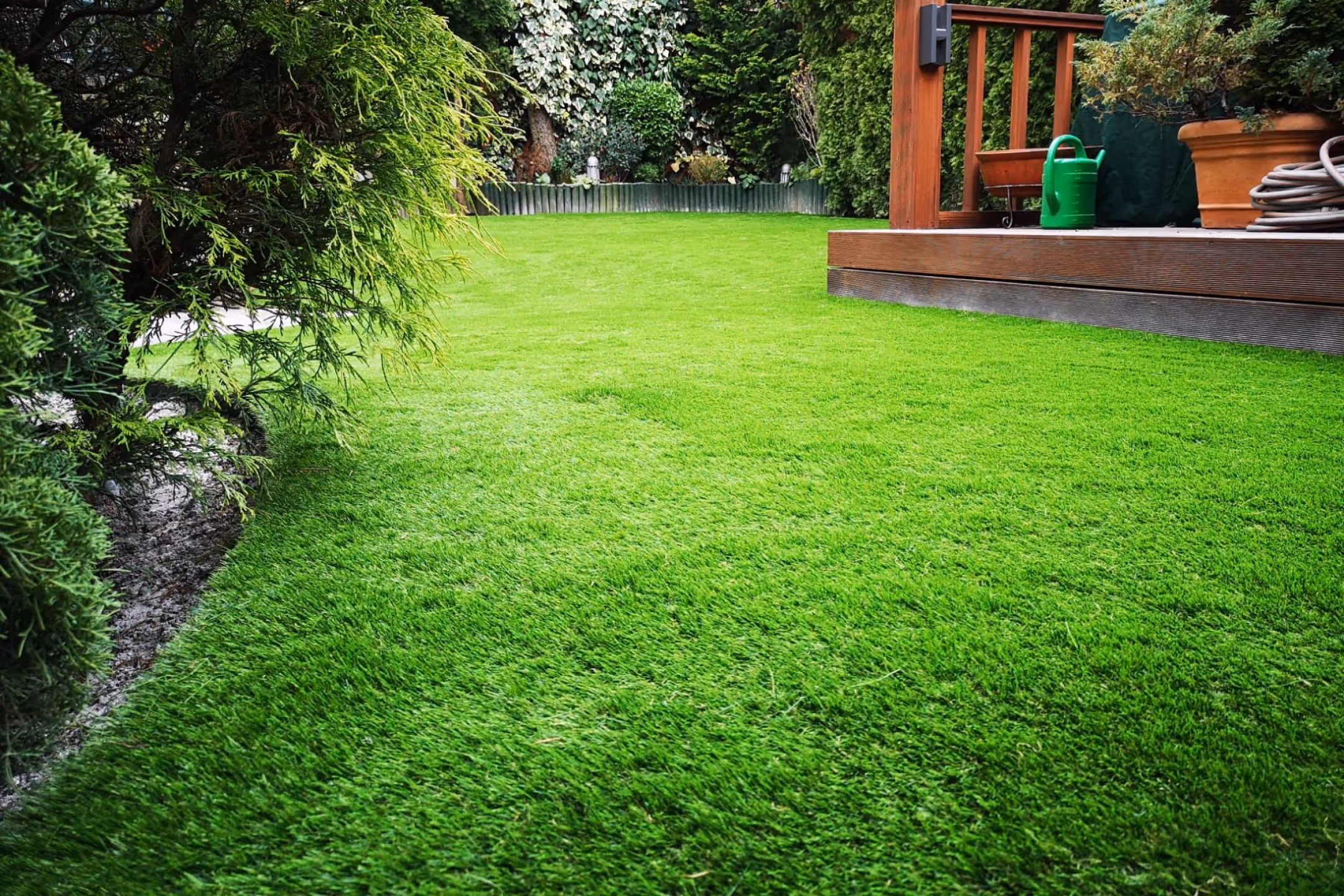 Nem túl sűrű, mégis természetes megjelenésű pázsit, amely a nyaralók otthonos kertjének barátságos hangulatát idézi.