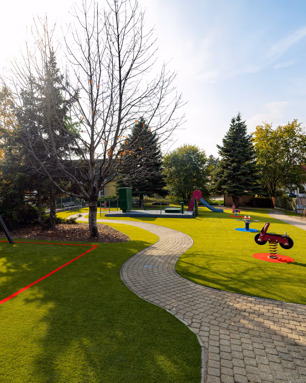 A PlayON műfűvel nem kell többé locsolni, és az esővíz sem okoz gondot – mindig tiszta, száraz, rendezett marad a játszótér.